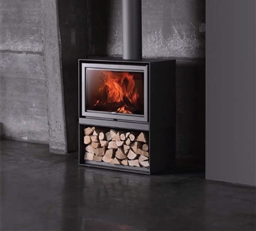 Il modello Stûv 16-H dispone di un piede portalegna integrato.