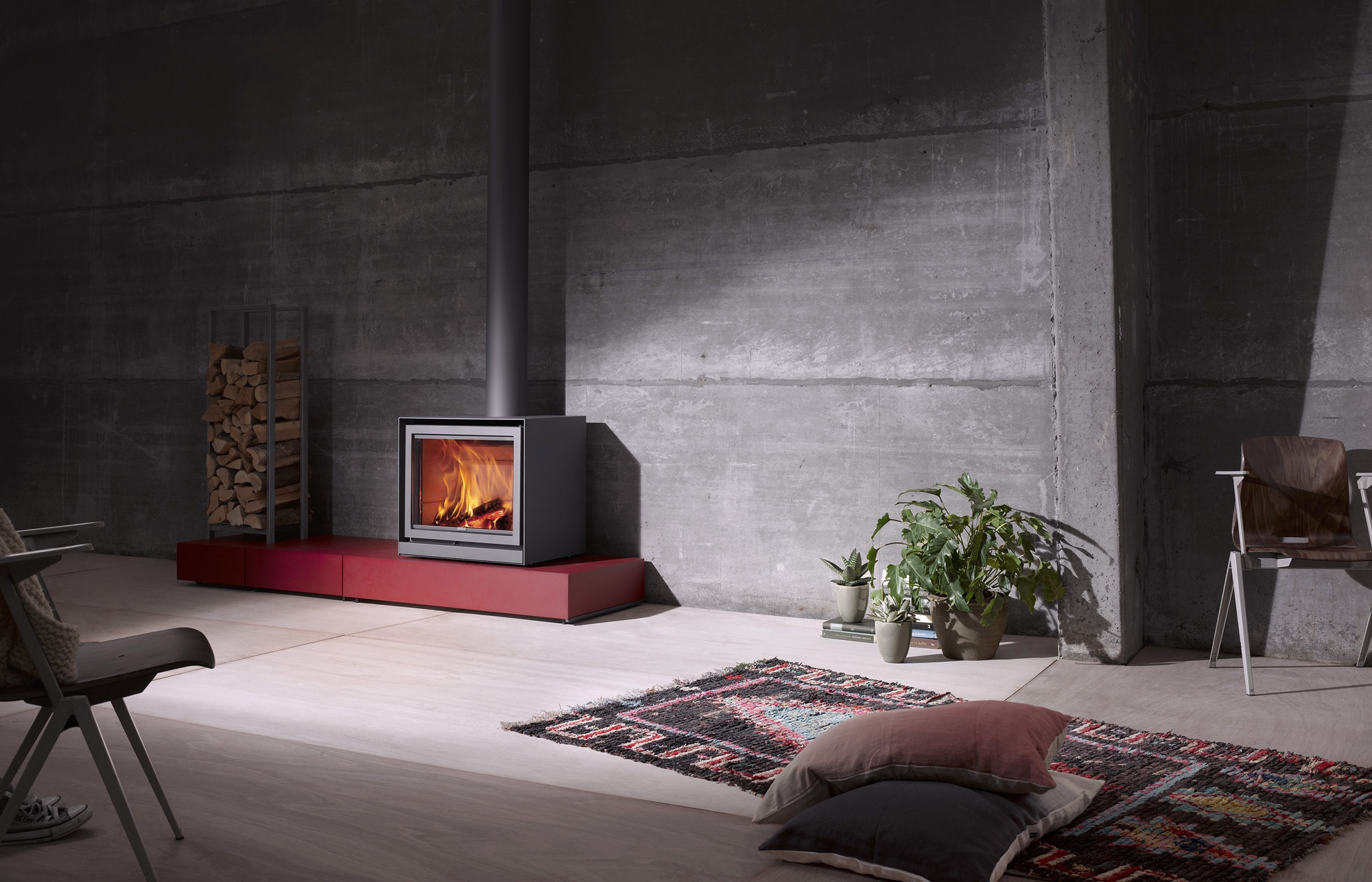 Stûv 16-cube può essere posizionato su un basamento Stûv, un basamento artigianale o un mobile. E' ideale sia come fonte di riscaldamento primaria che di sostegno.