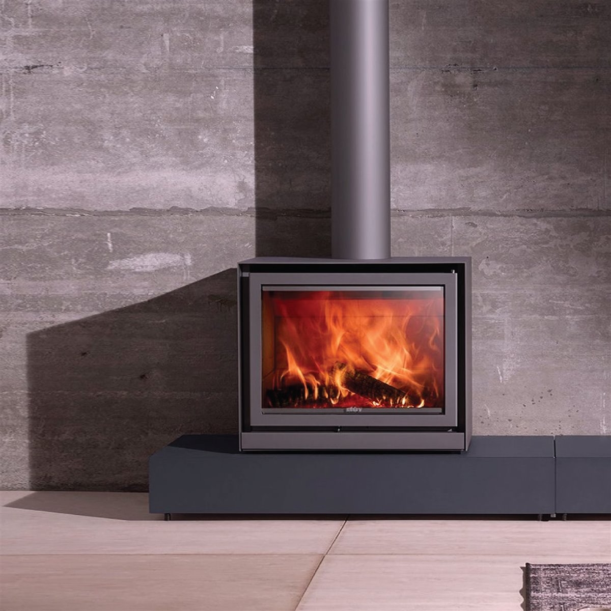 Stûv 16-cube può essere posizionato su un basamento Stûv, un basamento artigianale o un mobile. E' ideale sia come fonte di riscaldamento primaria che di sostegno.